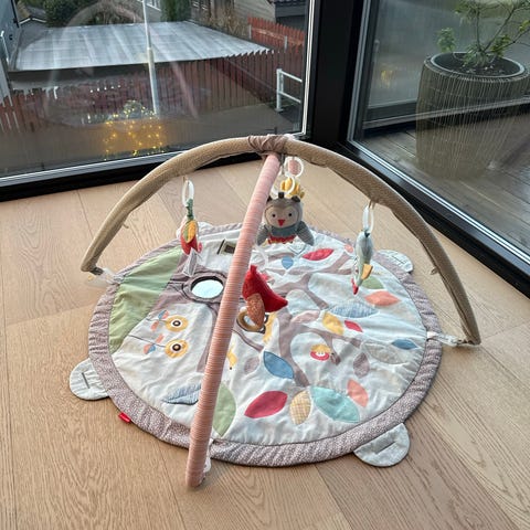Pent brukt babygym. Ingen spesielle bruksmerker annet enn litt på selve matten som kan fjernes i vask. Ellers som ny.