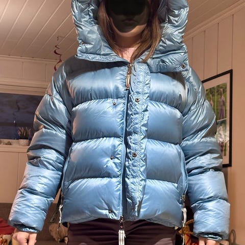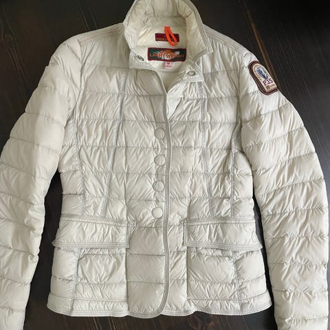 Parajumpers for kvinner i størrelse M. Jakken er grå/svart/grønn og laget av dun, som gir god isolasjon og varme. Super deilig og ikke minst LETT dunjakke.