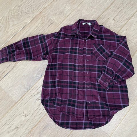 Rødrutete myk flanellskjorte i bomull str 134. Veldig fin og praktisk med trykknapper.