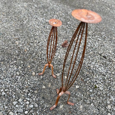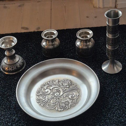 Selger sett med nydelige lysestaker. De er 31 cm høye og kan brukes med kubbelys og kronelys/langlys.