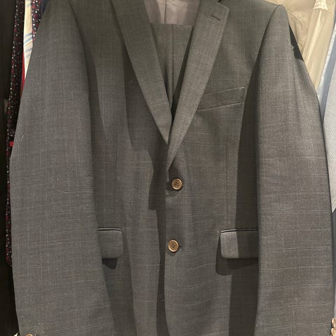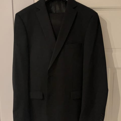 Dressmann Ull og Polyester, Blå Dressjakke for herre i størrelse 54. Jakken er laget av ull og har en blå farge. Den har to knapper foran og lommer med klaff. Buksen er i str. 36-32