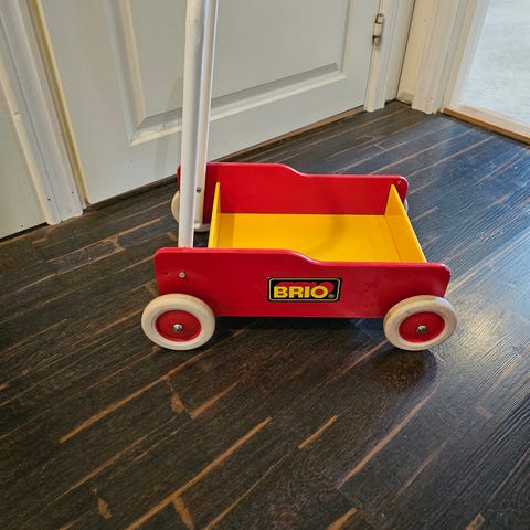 Den klassiske BRIO gåvognen i tre. Med justerbart håndtak og brems. Str. 480 x 300 x 480 mm. Fra 9 mndr.