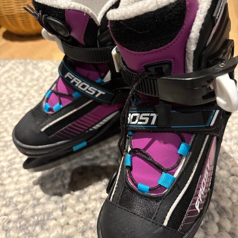 Lite brukt og nylig slipt. Justerbare så de passer ca 3 sesonger!