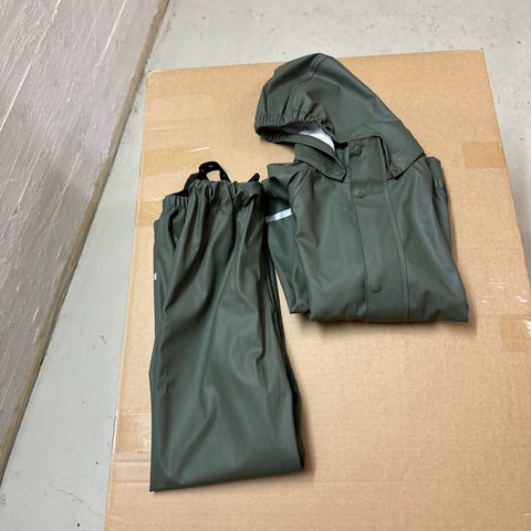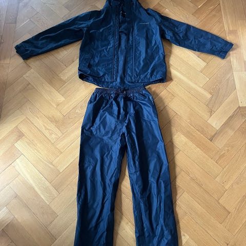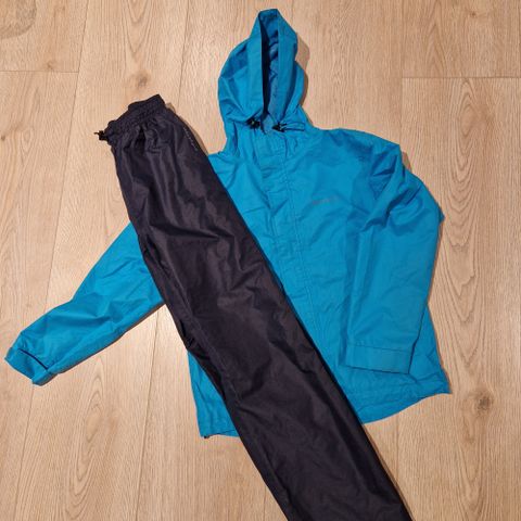 Nesten ubrukt Jotunheim regnsett str 152. Farge: blågrønn jakke og mørkeblå bukse.