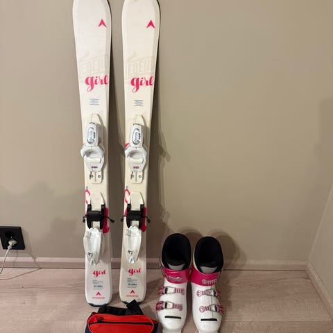 Slalompakke til salgs, pent brukt. Ski 90cm og 100cm lengde. Tre par sko. Skostørrelse ca 30-33 (brukt av barn fra ca 5 år) Ski, sko, hjelm, sele. Perfekt til barn som skal prøve alpint
