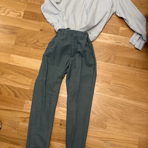 Grå penbukse merke Nautica str 8 år, lys blå penskjorte str 7/8 år merke Palace. Ikke synlig brukt, skjorten er utrolig myk og fin - 100% bomull. Buksen er utrolig stilig, den er 70% polyester, 36 % rayon og 4% ull.