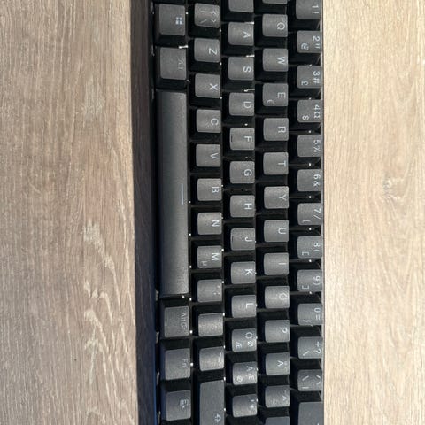 Selger et kompakt Anne Pro 60% mekanisk tastatur med US ANSI-layout og Gateron Blue-brytere, som gir tydelig taktil feedback og klikkelyd – perfekt for skriving og de som liker klassisk mekanisk følelse.