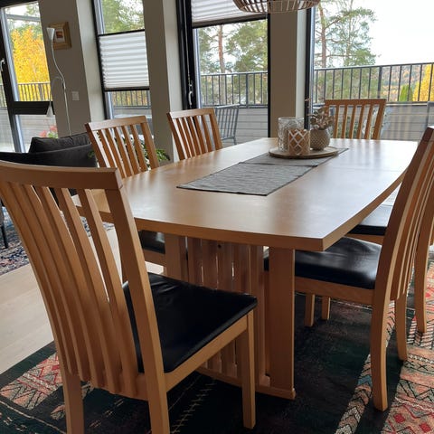 Medfølger 3 ileggsplater, så bordet kan bli 306 cm langt. Er mulig å legge i en fjerde plate, slik at bordet blir 358cm.
