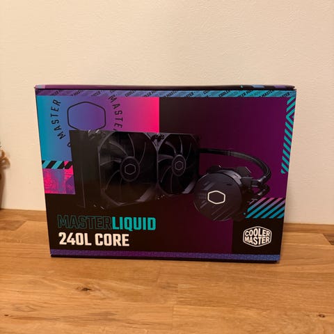 Cooler Master Atmos Stealth 240 AIO selges. Denne er importert til Norge og er i praksis som ny. Den har kun vært testmontert og kjørt én gang, før jeg landet på luftkjøling i stedet. I mitt bygg ble det rett og slett litt for trangt, ikke på grunn av ytelse eller kvalitet.