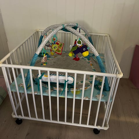 Bunnplate kan monteres i to ulike høyder. Hjul kan låses slik at lekegrinda ikke ruller.