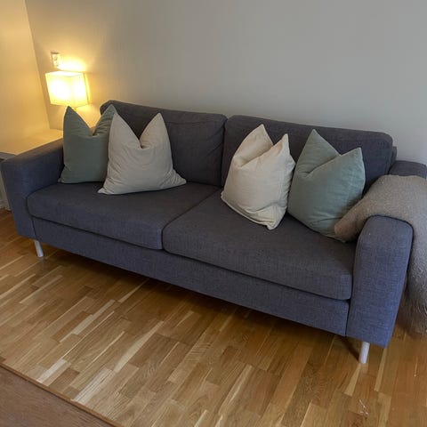 Blågrå sofapuff fra Bolia 90x90x H35