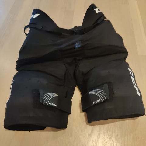CCM JR 160 hockeybeskyttelsesbukser i svart farge. Designet for å gi beskyttelse under hockeyspill. Passer for junior-størrelse 160.
