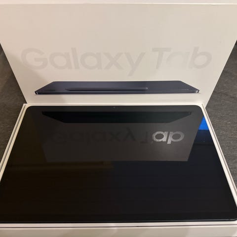 Samsung Galaxy Tab S nettbrett med 128 GB lagringskapasitet. Enheten har en skjerm som egner seg for både arbeid og underholdning, og leveres med et beskyttelsesdeksel og en penn for økt funksjonalitet.