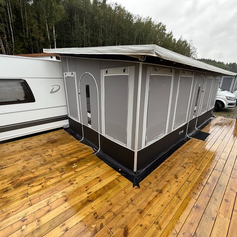 Innvendig har vi lagt heldekkingsteppe. Skyvedør med glas i front og det følger med ekstra forsterking for tak. Står på fast plass på Bondalselva camping på Sæbø. Det står montert på stor platting som vart montert same år (2023). Plassen kan overtakes etter avtale med eiger.