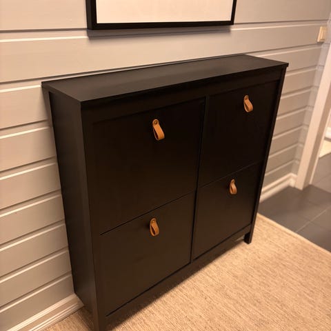 Pent skap/skoskap med innmat/hyller som kan justeres.