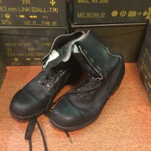 Hærens mørkegrønne beret med rød "flash" og H5-merket.