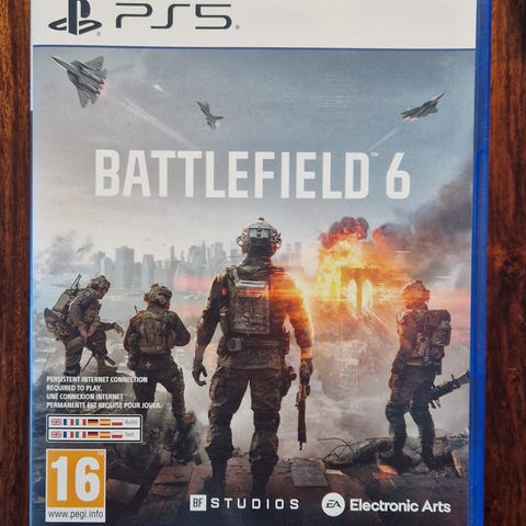Battlefield 6 Playstation 5 spill. Inkluderer spilldisk og originalt spillcover. Passer til Playstation 5-konsoll.