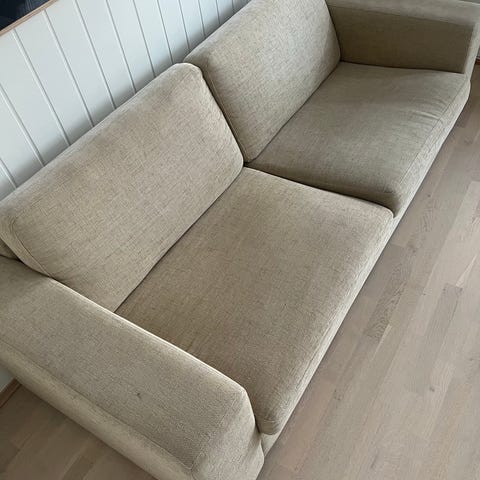 Comfy 3-seater sofa. There's some damage on the sides, probably from the cat, but it was like that when I bought it second-hand 4 years ago, and it doesn't really get in the way. I can't deliver it, but I can help you carry it to your car.