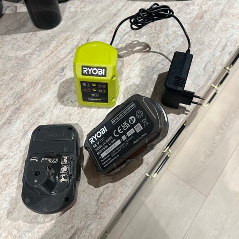 Komplett inkl batteri og lader (5ah + batterilader)selger for 1000, har også 2 ah 18 V batteri brukt 5-6 gangen, kan selges som pakke ( 5ah+2ah + batterilader)for 1200 nok