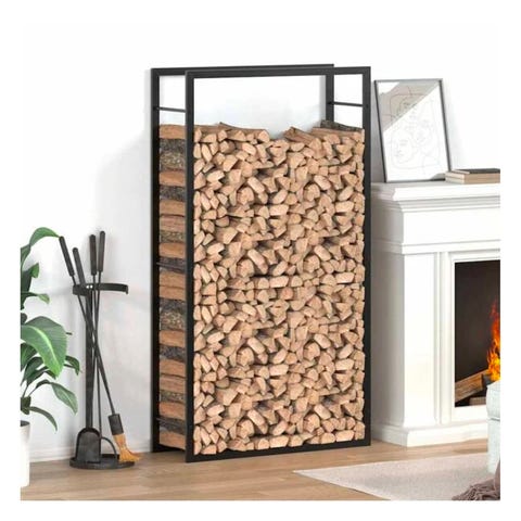 Lite brukt vedstativ i svart metall selges kr 200,- Ved kan medfølge. Mål 28x58