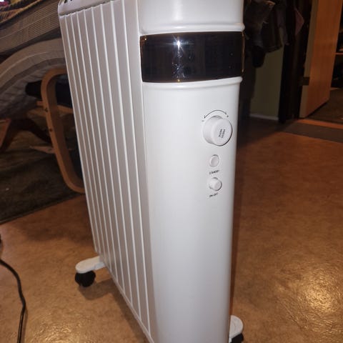 Glamox varmeovn i hvit farge. Elektrisk varmeovn med justerbar termostat. Passer for oppvarming av mindre rom eller områder.