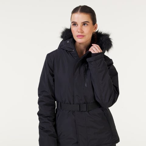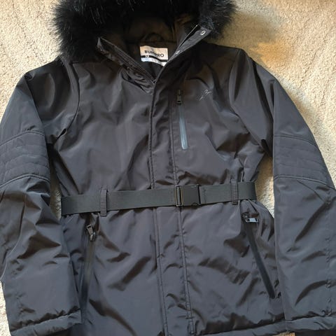 Pene detaljer som fuskepels og belte. Lomme for heiskort.