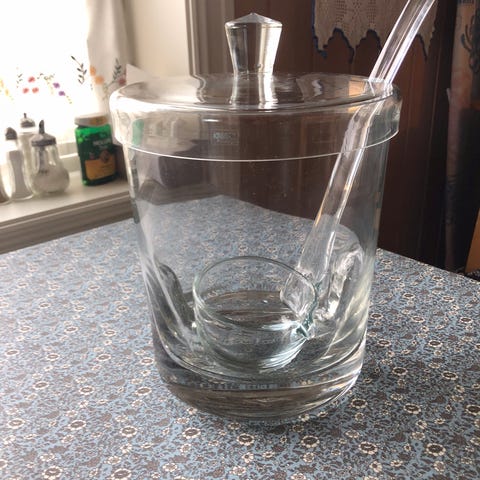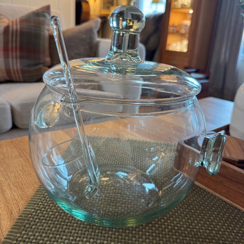 Selger flott punsjbolle i glass med innvendige bølger.