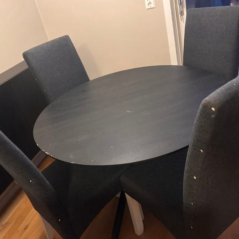 Den ene stolen har noen bruksskader. Ikke veldig synlige.