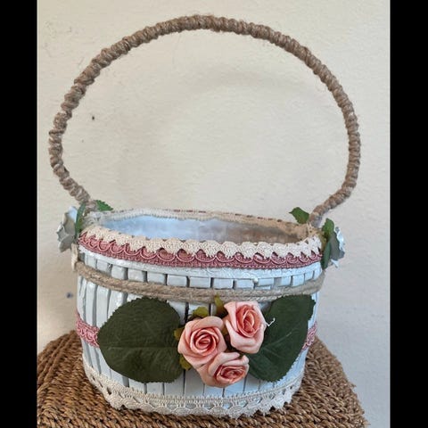Håndlaget kurv i flettet tre med rektangulær form. Egnet for oppbevaring av diverse gjenstander. Naturlig treutførelse med lys farge.kan sendes med post nord til kr 69