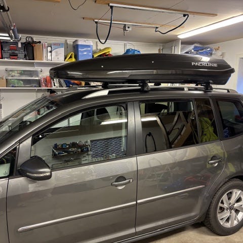 Packline takboks i grå farge. Egnet for ekstra lagringsplass på taket av bilen.