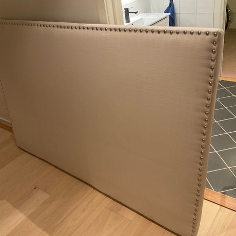 Selger en stilren og mørk blå sengegavk/hodegavl kjøpt hos JYSK i 2021. Hodegavlen har stått på gjesterom og er pent brukt - den har ingen skader. Det finnes normale bruksmerker, hovedsakelig fra å sitte lent mot hodegavlen. Ingen skader, og stoffet fremstår pent. Vi bor i tredje etasje uten heis, men det er bred og fin trapp opp 😊
