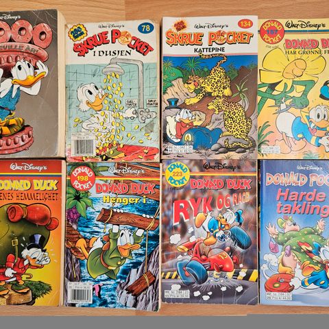 Donald duck pocketbøker fra nr 1 -544 flere uleste og i plast. Kr 25 pr stk. Kan hentes i oslo og kan sendes frakt dekker kjøper.