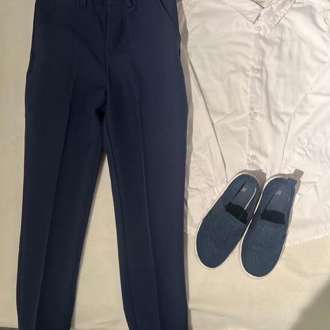 Name it grå penjakke / blazer (litt tøff) størrelse 128. Jakken er laget av et mykt kordstoff / slitesterkt materiale, egnet for barn i alderen 6-7 år. Jakken har et klassisk design med knapper og lommer, og passer til ulike anledninger. Den har litt tøff stil, og stoffet inni jakken er det samme som den rutete skjorten. Skjorten er 100% bomull.