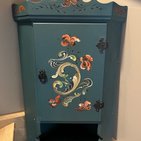 Rosemalt hjørneskap ønskes kjøpt