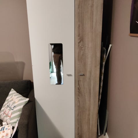 Praktisk skap til oppbevaring med mange skuffer og hyller.