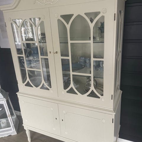 Veldig fint vitrineskap selges, god plass til oppbevaring og fine glassdører for utstilling med lys på innsiden.
