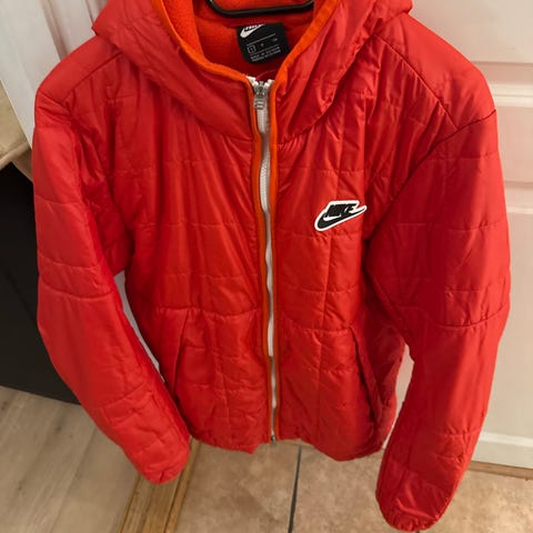 Nike jakke i størrelse S, laget av polyester materiale. Jakken er grå og designet for menn.