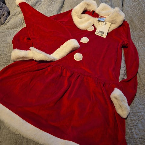 Søt og pent brukt, fin rødfarge/julefarge. Str 134/140 eller 8-10 år.