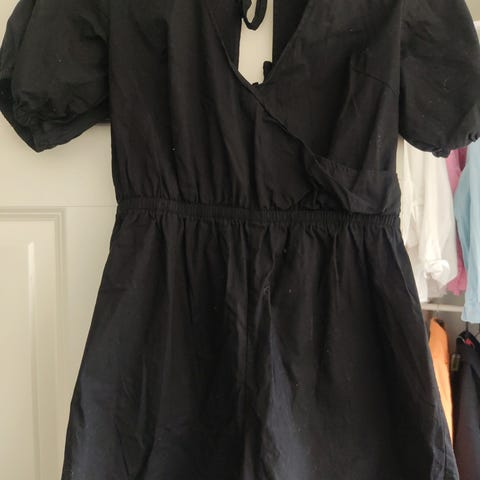 Svart minikjole til spesiell anledning i størrelse M for kvinner. Kjolen har detaljer foran og åpen rygg.