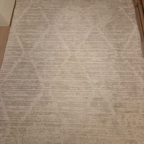 Har vært brukt i et hus med katt . Fortsatt mange gode år igjen på dette teppet. Kjøpt fra Eichholth i Nederland. Kjent designer leverandør. Selges også i Norge . Kostet ny ca. Kr 15.000,-