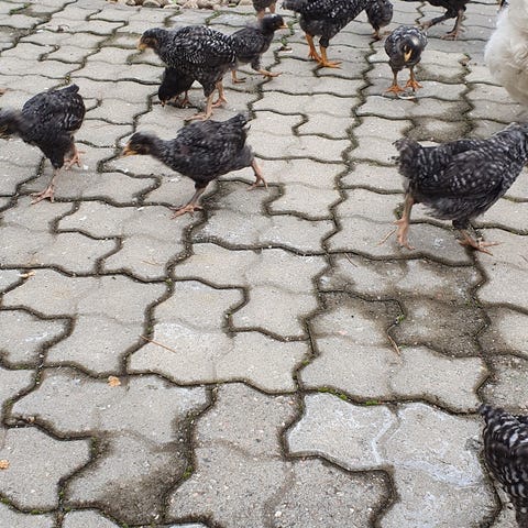 Kyllingene kommer fra høner som er mix av stor/mellom rase. De er rolige og snille. Alle våre høner får gå fritt, og får kun økologisk mat, samt matrester.