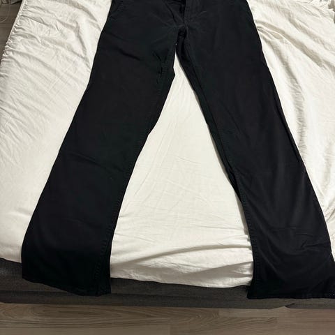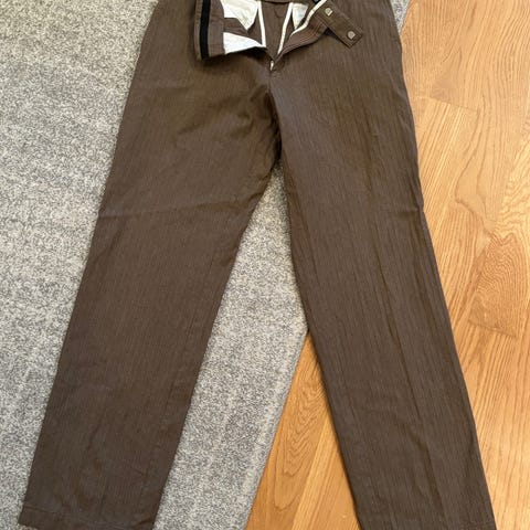 Beige chinos fra Tailor Store. Custom made, men tilsvarer str 48. Elastisk stoff. Kan enkelt brettes opp og med. Kroner 250.