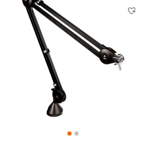 Tilleggsutstyr for datamaskin med justerbar arm i svart farge. Passer til montering ved skrivebord eller arbeidsstasjon for å holde mikrofon.