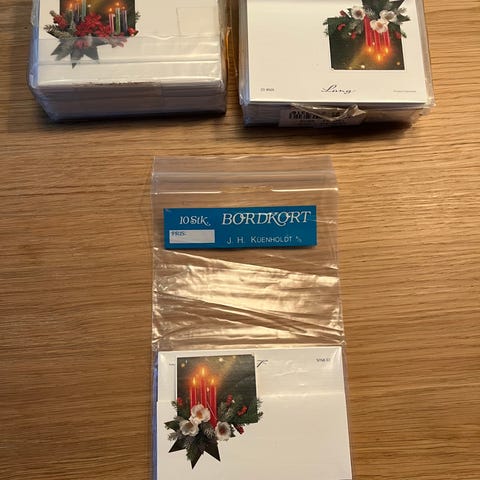 Hjemmelagde julebord kort. Kan lage navneskilt som vist på første bilde. Selges da de ikke lengre er i bruk hos oss.