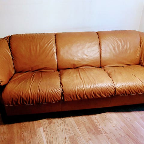 Pent brukt sittegruppe med regulering på rygg. Lys brunt skinn. Deilig å sitte i.
