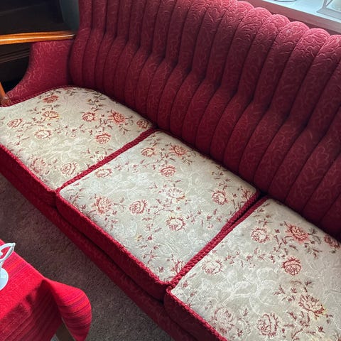 Pent brukt eldre rosa sofagruppe. Den er kjøpt på gamle møbelbutikken på Jessheim v/ Ruth Damgård. Pent brukt, har stått i penstua som bare er brukt noen ganger i året.