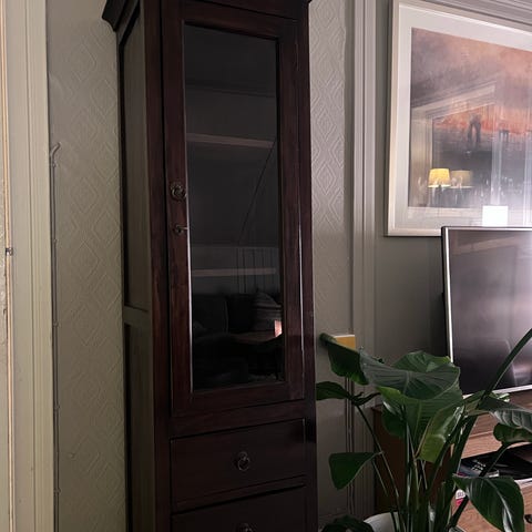 Selger vitrineskap av serien: Gevgelija, i sammenheng med oppussing av leiligheten. Skapet er pent behandlet etter at jeg kjøpte det i 2023. Det er meget robust og vil kunne håndtere det aller meste du vil klare å stable i det.