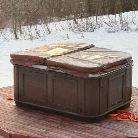 Den har såklart noen bruksmerker. Har blitt brukt 2 sesonger og vært lagret innendørs om vinteren.