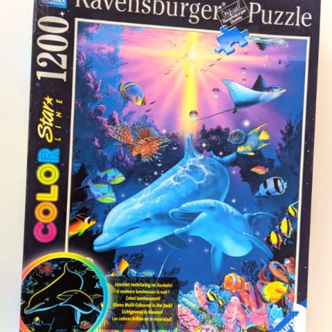 The Mythical World puslespill med 1000 brikker. Puslespillet viser et fantasifullt kart over verden med mytiske skapninger og magiske steder. Passer for voksne og eldre barn som liker detaljerte og utfordrende puslespill. Puslet én gang, alle brikkene er i boksen