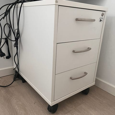 Har to hvite sengeskuffer med hjul og knotter som måler 98x15x96